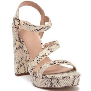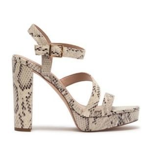 BCBGeneration Ivory Leather Snakeskin Embossed Strappy Sandal Size 9.5