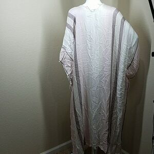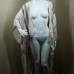 New without tag one size. Very pretty sheen on this one! This could be considered an open cardigan too not sure exactly. It has sleeves but it’s the weight and material like a shawl or wrap.
