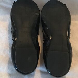 BCBGeneration Luckies black patent rhinestones bow ballet flats 6 1/2. Original box included. Preowned but worn only 3-4 times. Good condition.