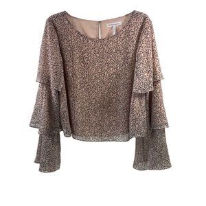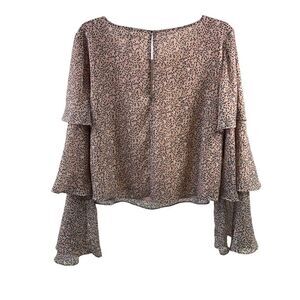 BCBGeneration Pink Cropped Long Tiered Ruffled Sleeveless Blouse Size L