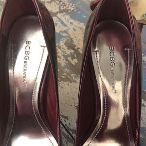 Gorgeous heels in the yummiest ruby color. There are some flaws on these, mostly the left shoe. They are VERY difficult to see, and some are on the leather insole which I treated with leather conditioner. Please review all photos.