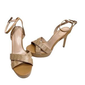 BCBGeneration Sandals Size 9 Tan High Heel Ankle Strap Open Toe Platform