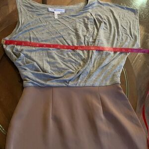 BCBGeneration Size 4 Scoop Neck One Sleeve Beige Gray Snap Zipper Woman’s Dress