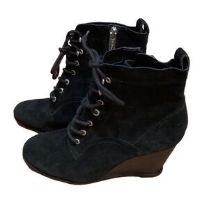BCBGeneration Wiley Suede Lace Up Wedge Ankle Boot Bootie Black 7