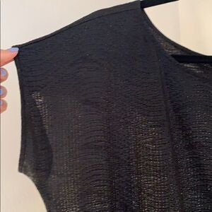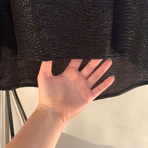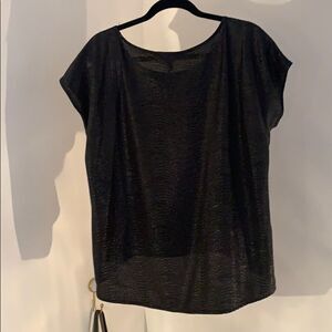 Shimmery black tee with short sleeve - slightly shorter in the front, longer in the back. Great condition!