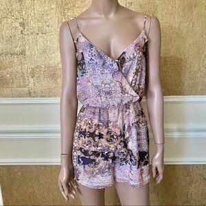 BCBGeneration pink chiffon print ruffle romper S