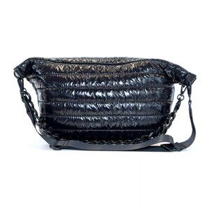 BCBGgeneration, Quilted Sling Crossbody Bag with Woven Chain, NWT Black patent