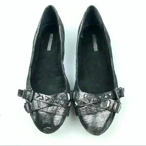 BCBGgeneration Womens flat size 7.5 37.5 crackled silver studded belted ballet