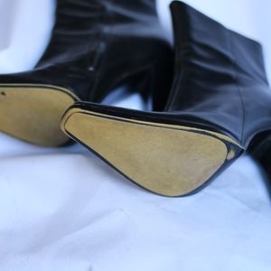 Black leather boots from BCBGirls. Exterior looks excellent; interior has some fading, scuffing etc. (look at picture 7)