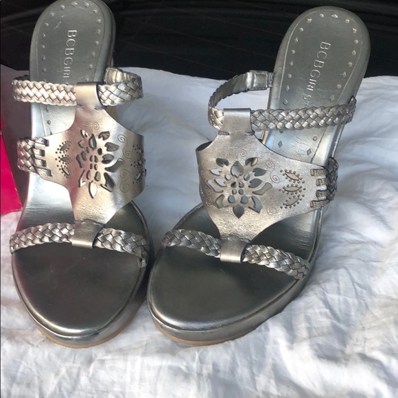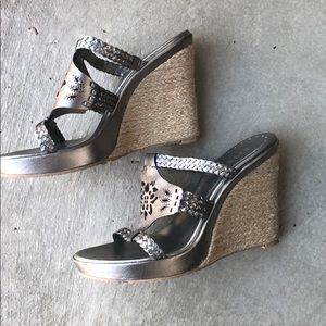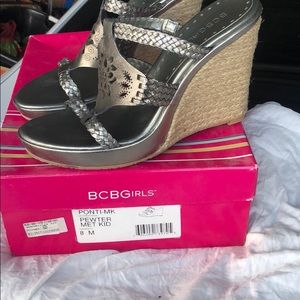 BCBGirls Beautiful pewter wedge espadrille worn a few times still lots of life