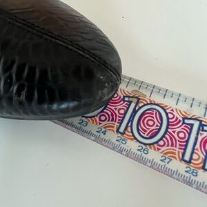 These BCBG glossy beauties have seen the city streets but still have a whole life yet to live. 1” wedge heel with crocodile embossed uppers. Flattering almond shaped toe with seam. The inside lining is flaking a bit, and the size was worn off. I’ve measured the boots (9.5in) which equates to a 7.5 women’s. There are Dr Scholls gel inserts (those run around $15) which are a bonus. They help so much if your feet get tired but are easily removed. Gorgeous boots to live in for a few more seasons. Priced accordingly for wear on the inside and some scuffing.
