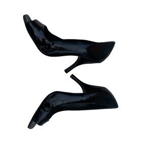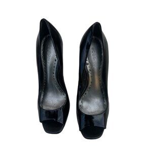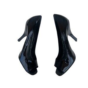 Stylish BCBGirls black patent leather heels, size 8.5 M, with a peep toe design. Elegant and versatile, perfect for any dressy occasion.