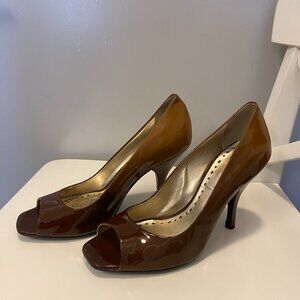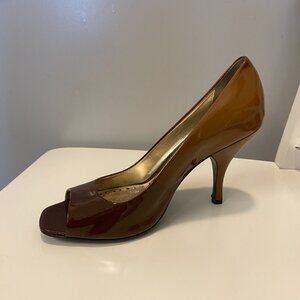 BCBGirls Ariel Brown Ombre Patent Peep Toe Heels Size 8
