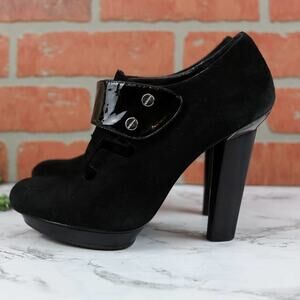 BCBGirls Black Suede Leather Ankle Booties Platform Heels Size 8