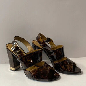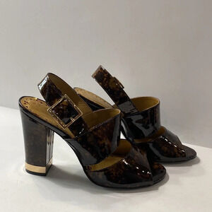BCBGirls Brown Gold Tortoise Shell Patent Leather Ankle Strap Block Heels Size 9