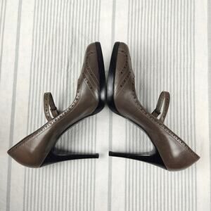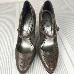 BCBGirls Brown Gray Leather Mary Jane Heels Platform Pumps Size 9.5B/39.5