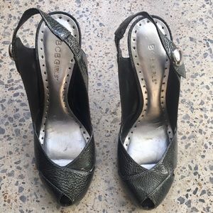 BCBGirls Grey Patent Leather Peep Toe Slingback