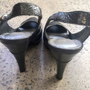EUC. Gently worn. Charcoal grey patent leather. Peep toe/ sling back with elastic for a comfortable fit. Size 7 1/2. Fits true to size IMO.
