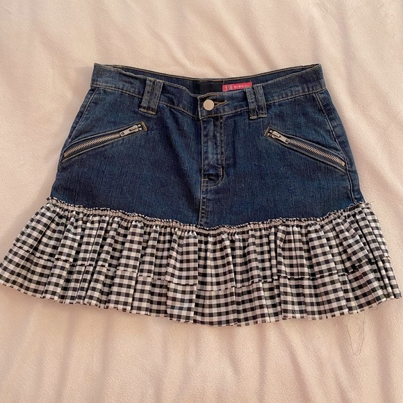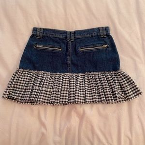 Jean skirt with plaid ruffles, 4 zipper pockets (2 front and 2 back)