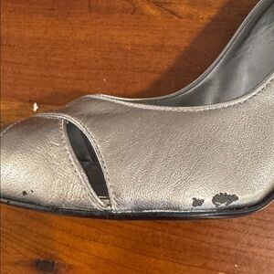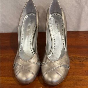 Chic metallic heels by BCBGirls. Stylish and versatile. 3 1/2” heel