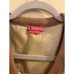 BCBGirls Vest Women Brown Rabbit Fur Wool Bow Tie Open Sleeveless. Soft stylish brown wool blend knit girls vest with ties in front, silky lining inside, and cream colored 100% rabbit fur lining on front by BCBGirls. Features: Pit to pit: 17 in Gender: Women Sleeve: Sleeveless Neckline: V-Neck