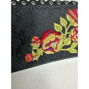 BCBGirls Women's Black with Multi-Color Floral Embroidery Clutch Purse Wallet