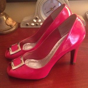 EUC Gorgeous red patent 4" heels. The color in the photo makes it kinda pink but this is a deep red. Beautiful and perfect for date & party nights. Price firm. Can bundle to save shipping.