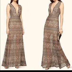 BCBGmAxazria Aurora Embroidered Tulle Mesh Maxi Dress Gown Size 4