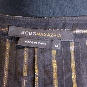 BCBGmaxazaria Silk Blouse Short Sleeve Black Gold Striped V Neck M