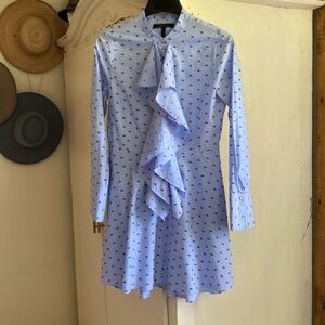 BCBGmaxazria blue and red polka dots long half sleeve ruffle button down (it’s missing one button) front dress size M