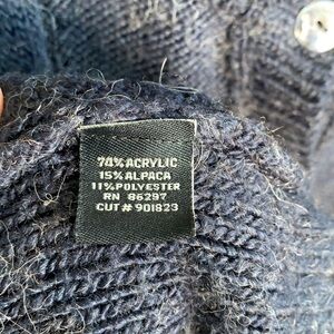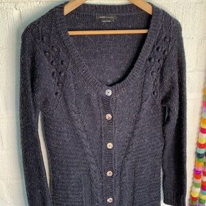 BCBGmaxazria Alpaca Long Button Down Duster Navy Pom Pom Cardigan Sweater sz L