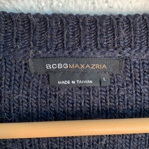 BCBGmaxazria Alpaca Long Duster Navy Pom Pom Sweater sz L