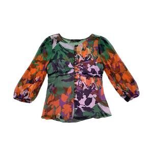 BCBGmaxazria Floral Print SILK Peasant Blouse Women’s Size L Large Chiffon