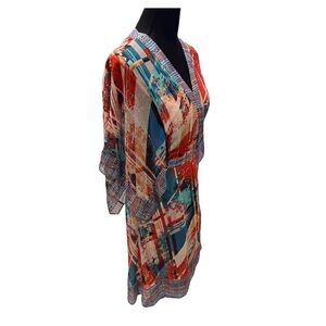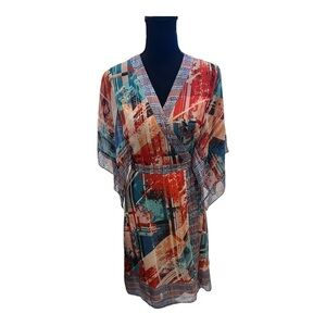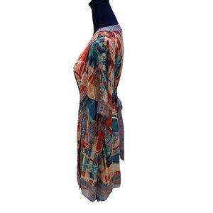 BCBGmaxazria Krystie Poppy Comb Silk Boho Wrap Dress, size XSmall.