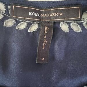 BCBGmaxazria Navy Blue Silk Embroidered Short Sleeve Peasant Blouse Size Medium