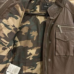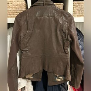 BCBGmaxazria brown leather utility jacket. Size s. Slightly worn. Minor mark on sleeve as shown in picture above