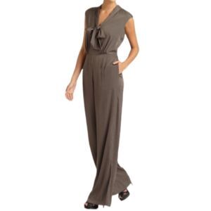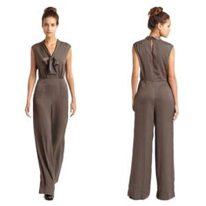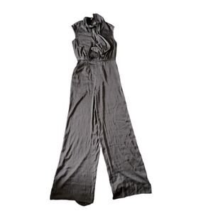 BCBGmaxazria satin dark gray jumpsuit , slightly wide leg, has a tie in the front, key hole back , very sleek and chic