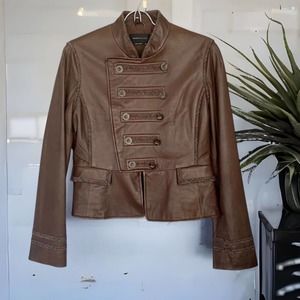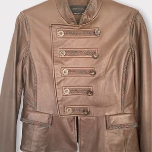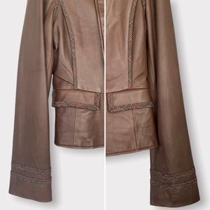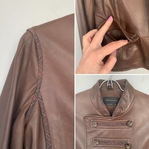 BCBMaxAzria Military Style Leather Jacket With Plaid Trim Size Medium