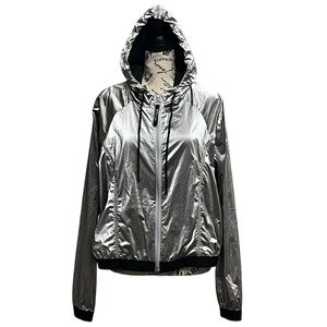 BCBgeneration Womens Silver Full Zip Hoodie Windbreaker Lightweight Jacket XL