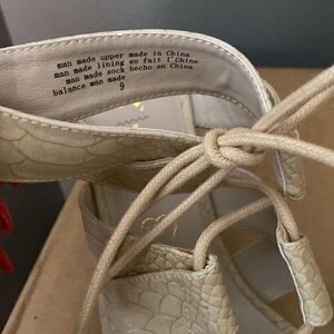 BC Born In California Lace Up Vegan Heel Taupe Tan Faux Snakeskin