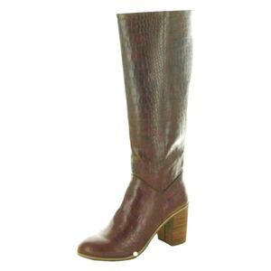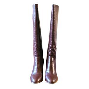 BC FOOTWEAR MAKE AN IMPACT Vegan 🐊 Croc Stacked Heel Knee High Boots 10M