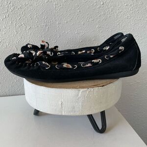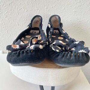 Super cute pair of slip ons in excellent preowned condition and featuring a floral design over black.
