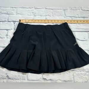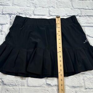 This black skater skirt by BCG features a playful pleated design, perfect for casual or work settings. Its mini length and ruffled style add a touch of flair, making it a versatile addition to any wardrobe. Shorts underneath.