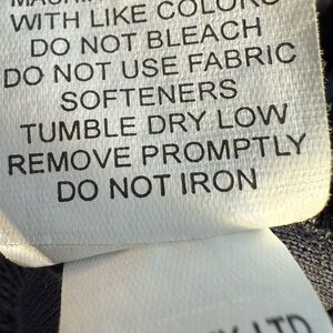 TUMBLE DRY LOW REMOVE PROMPTLY