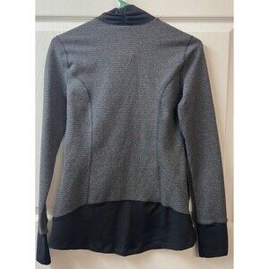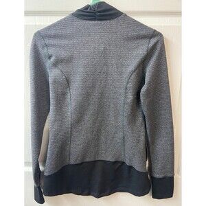 BCG Athoetic Style jacket In Womens Small Black Gray Running Jogging Jacket Knit Fabric Thumb holes Full Zip In very good used condition. Bust 34 inches Waist 28 inches Length :24 inches Sleeve length from armpit:20.75 (588)Apparrel Item or items were steamed cleaned or washed per manufacturers instructions prior to listing.
