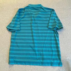 BCG Mens Polo Shirt Blue Black Striped Short Sleeve Casual Top Sporty L