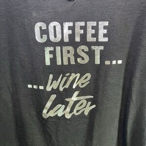 BCG PLUS WOMEN'S 1X T-SHIRT V-NECK SHORT SLEEVE GRAY Coffee First Wine Later