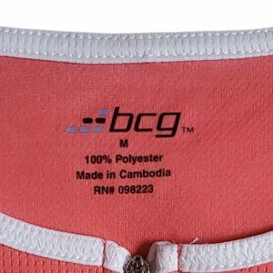 Brand: BCG. Occasion: Casual, Workout. Size Type: Regular. Size (Women's): M. Material: 100% Polyester. Neckline: Round Neck. Style: Athletic Top, Quarter Zip. Sleeve Length: Short Sleeve. Color: Pink with White Accents. Pattern: Solid. Features: Lightweight, Breathable, Quarter Zip.