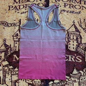 Size medium BCG Tru-Wick racer back tank top. Grey and pink striped. Fitted but very stretchy! EUC