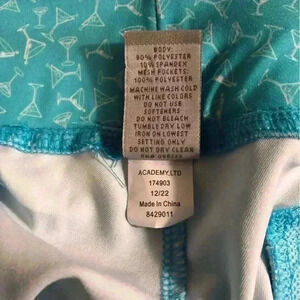 BCG Womens Medium Running Shorts Turquoise blue and white Margarita Print